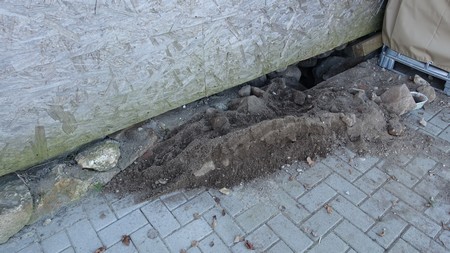 08.03.22 Vor einigen Jahren hatten wir in der Scheune eine Dachsfamilie, die mit ihrem umfangreichen Bau nicht nur den Boden der Scheune sondern auch das Fundament des Westgiebels zerstört hat. So sehr, dass eine aufwendige und teuere Sanierung der Scheunenwand erfolgen musste. Dabei wurde das alte Feldsteinfundament (bzw. seine Reste) ersetzt duch ein tiefes und dickes Betonfundament, auf dem das Fachwerk der Scheune aufgesetzt wurde.