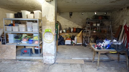 4.4.22 Die Ställe auf unserem Hof haben alle eine wechselvolle Geschichte: Schweine, Kühe, Bullen, Garage, Abstellraum, ... alles war mal drin, in jedem der drei Stallgebäude. Der Stall, den wir für die Hühner und Schafe herrichten wollen, liegt im Erdgeschoss des Knechthauses und war zuletzt Abstellraum, davor Pferdestall, davor Kuhstall. Es sind mehrere aus Feldsteinen und Ziegeln gemauerte Tröge darin, alle verfallen. Und es sind unterschiedliche Böden darin. Alles das muss raus.