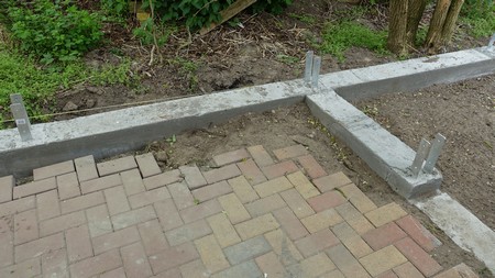 29.4.22 Da wir wegen Sturmschaden den gesamten Zaun zur Westseite neu machen müssen, haben wir uns entschlossen, die bewährte "Technik" des Zaunes der Ostseite anzuwenden. Dazu werden Gräben gezogen, Schalungen eingesetzt, diese mit Beton gefüllt, entschalt und nach Aushärtung dann mit Pfosten und Brettern "bezäunt". So sieht ein fertiges Fundament aus, mit H-Trägern für 90x90 Pfosten gleich eingegossen - am Beispiel des Tores zwischen Hühnergarten und Garten: