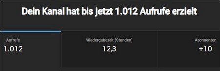 10 Abonnenten sind nicht viel, und auch die 12,3Stunden Schauzeit könnten mehr sein. Aber: Wir lernen noch, und wollen damit weitermachen.