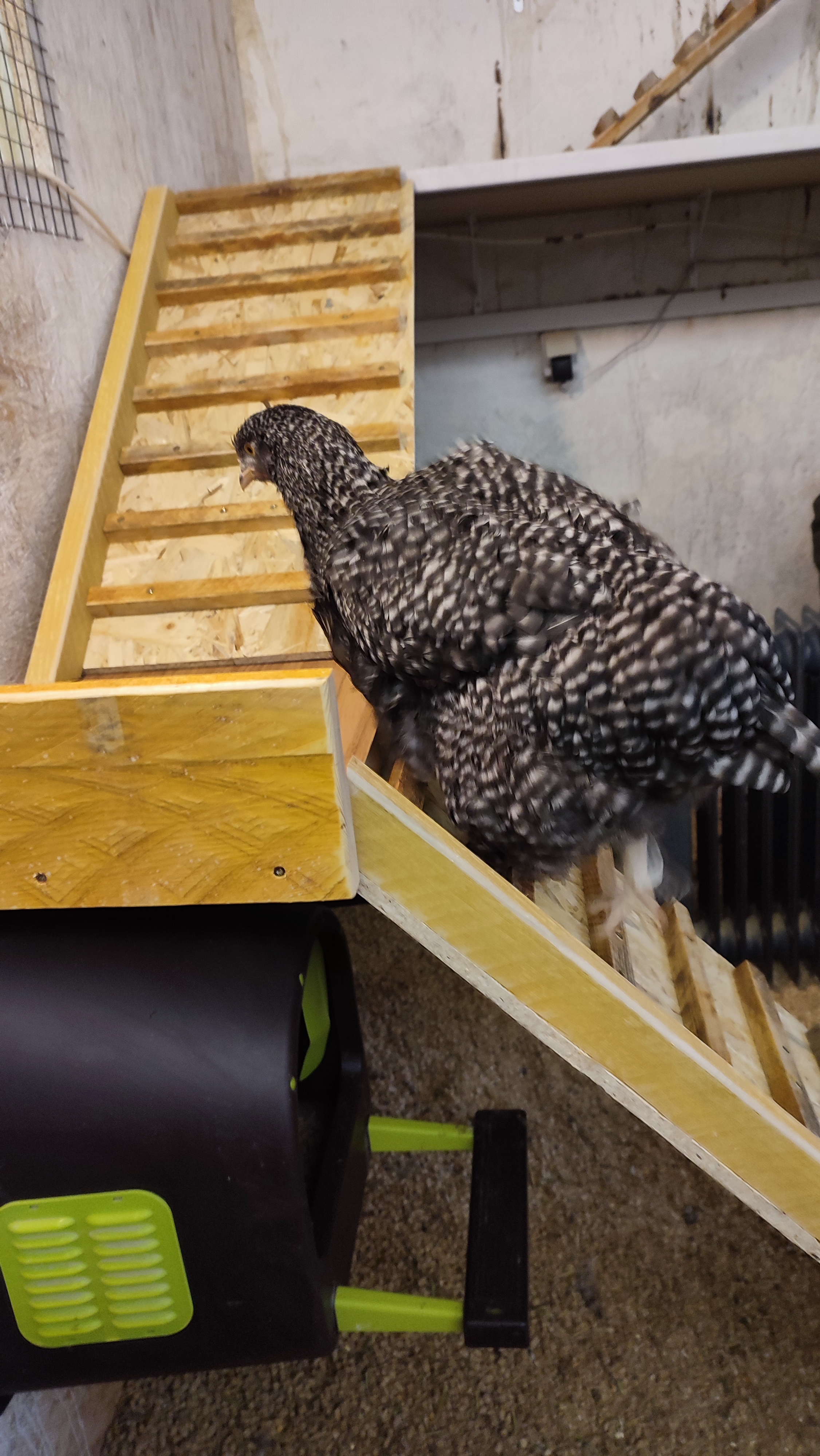 Heute Abend gegen 20:00 gehen die Hühnchen schlafen. Mal sehen, ob und wie sie die neue Leiter annehmen.