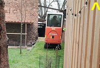 Und wir haben den Bagger aus seinem Winterquartier geholt, weil es demnächst im Garten mit dem Zaun weitergehen soll.