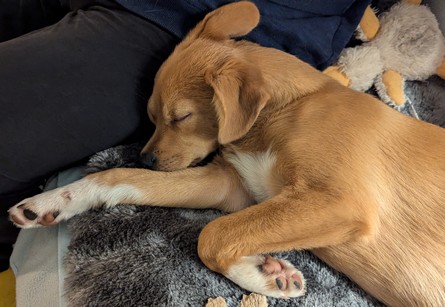 Elli nimmt uns ganz in Beschlag. Wir verwenden sehr viel Zeit mit Kümmern, Laufen, Stubenreinheit, Aufräumen und anderen Dingen für Elli. Vor allem aber genießen wir die Zeit mit ihr (ok, nachts aufstehen und rausgehen bei Minusgraden ist nicht so toll): Spielen, kuscheln, trainieren, gemeinsam auf dem Sofa sitzen, im Garten arbeiten. Und uns an ihrer Entwicklung und ihrem Wesen erfreuen.