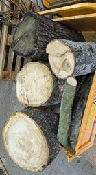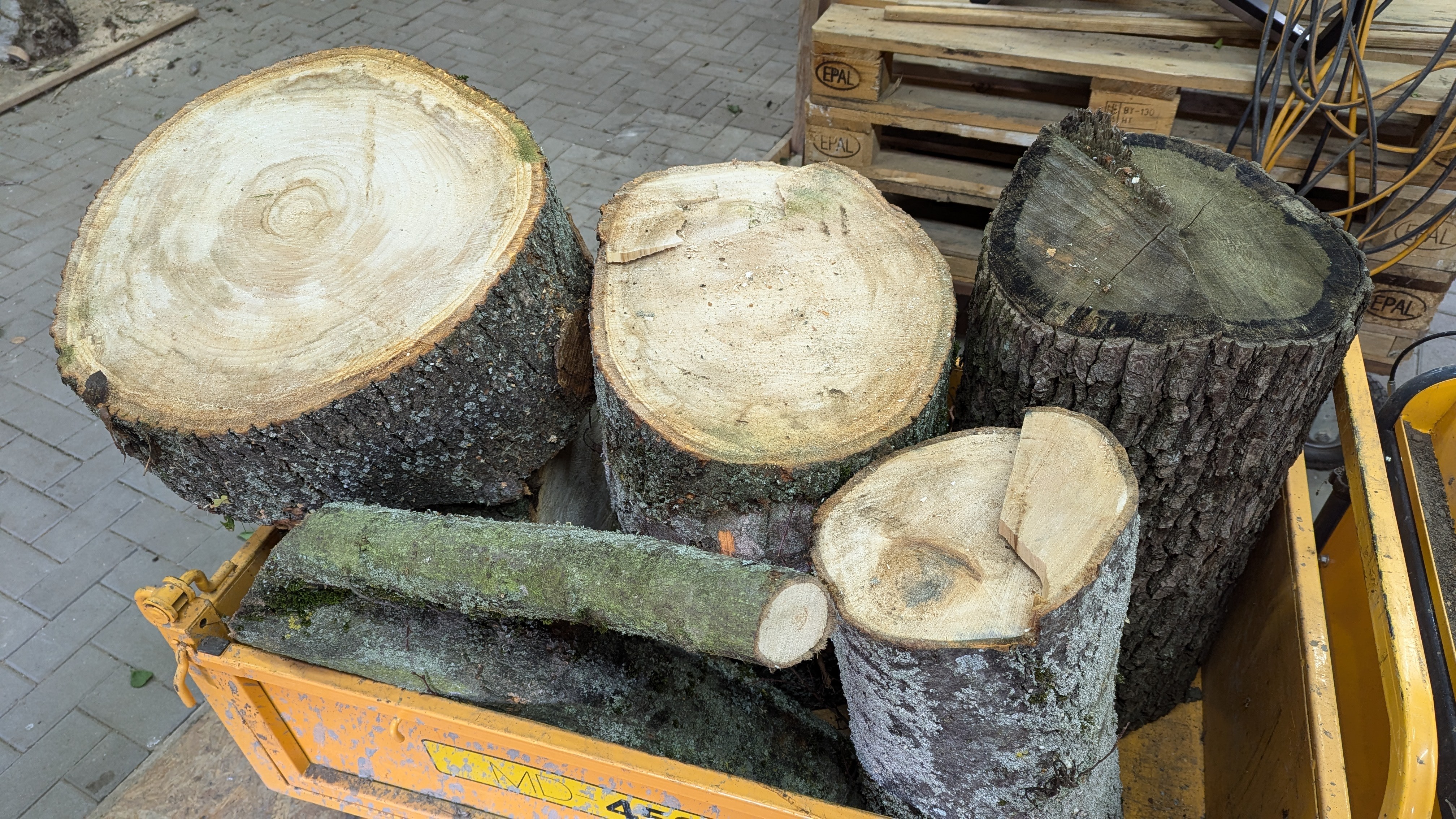 Elli und ich sind dann unsere Runde zuende gegangen, haben danach aus der Scheune den Dumper hinten ans Grundstück gefahren, und weniger als eine Stunde nach der Begegnung mit dem Nachbarn und dessen Hilfe waren ein ordentlicher Batzen dieses Lindenholzes plus ain sehr altes Stück Eichenstamm auf dem Dumper und in der Scheune.