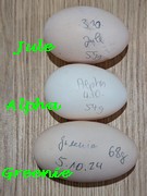 Nebenan die letzten drei Eier im Vergleich. Es sieht aus, als müsse sich Alpha anstrengen, nicht überholt zu werden...