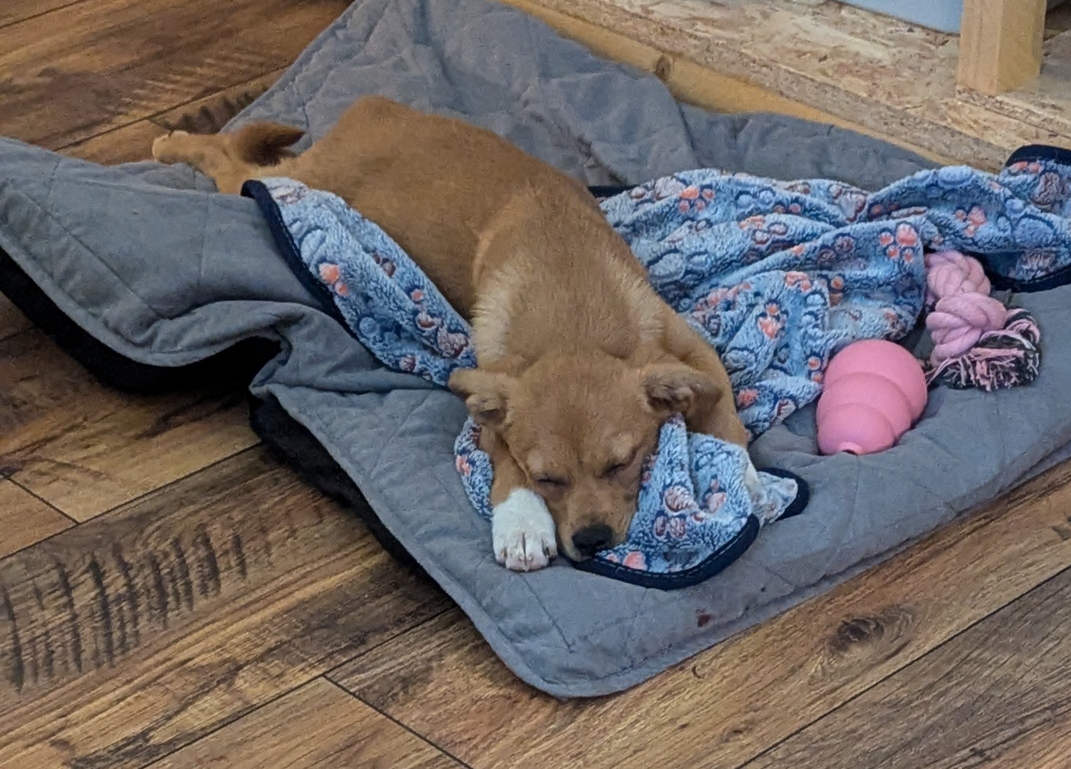 Elli ist bereits auf ihren neuen Namen und bei uns wohnhaft bei Tasso angemeldet, Krankenversicherung ist abgeschlossen, in ein paar Tagen haben wir einen Vorstellungstermin beim Tierarzt, damit sie dort bekannt ist, die diversen Trainings (Leine, Stubenreinheit, Sitz, Abruf,...) laufen bereits.
