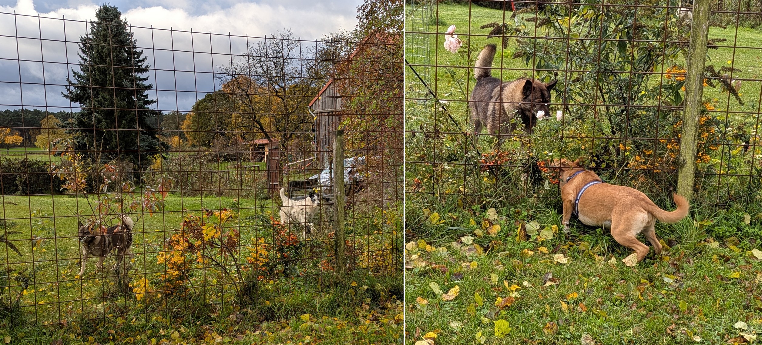 30.10.25 Die Kläffer in Mützdorf sind eigentlich doch lieb. Glaube ich. Auf der Mützdorfrunde heute sind wir ja wieder bei den beiden vorbei gekommen.