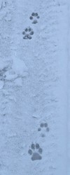 4.1.26 Gibt es etwas Schöneres, als seine Spuren zu hinterlassen? So habe ich das heute im Schnee gemacht. Ganz ordentlich. Es ist so schön im Schnee! Ich kann richtig toben, und wir treffen nur selten andere Leute (für die ich an die Leine muss). Und meine Begleiter werfen ab und zu einen Schneeball, so toll!