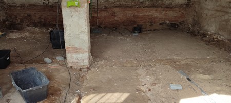 4.4.22 Die Ställe auf unserem Hof haben alle eine wechselvolle Geschichte: Schweine, Kühe, Bullen, Garage, Abstellraum, ... alles war mal drin, in jedem der drei Stallgebäude. Der Stall, den wir für die Hühner und Schafe herrichten wollen, liegt im Erdgeschoss des Knechthauses und war zuletzt Abstellraum, davor Pferdestall, davor Kuhstall. Es sind mehrere aus Feldsteinen und Ziegeln gemauerte Tröge darin, alle verfallen. Und es sind unterschiedliche Böden darin. Alles das muss raus.
