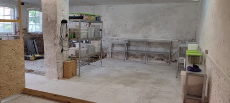 > Der Lagerbereich ist bereit, Futter, Streu und all die anderen Dinge für die Tierhaltung aufzunehmen: