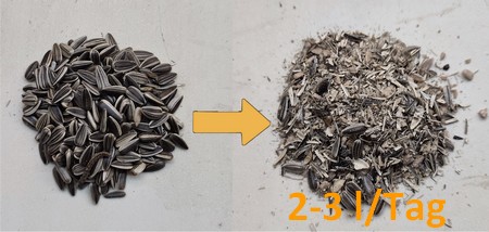 07.03.23 Es will und will nicht Frühling werden. Als würden sich die Hühnchen auch danach sehnen (obwohl sie ja noch nie außerhalb ihres Stalles waren und daher nicht wissen, was 'schönes Wetter' ist), futtern sie derzeit Unmengen Sonnenblumenschrot.