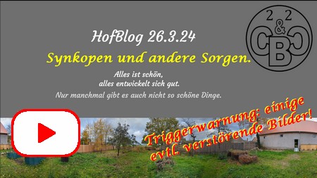 26.3.24 Normalerweise zeigen unsere Videos die schönen und erfolgreichen Seiten dessen, was hier passiert. Das betrifft auch die Hühner. Aber, es gibt nicht nur Licht! Minnie hat seit einiger Zeit Hüftprobleme und bekommt Schmerzmittel, Oskar hat Synkopen und jagt uns gelegentlich ordentliche Schrecken damit ein. Vorab: Es geht den beiden und auch dem Rest der Schar gut, aber die Probleme existieren.