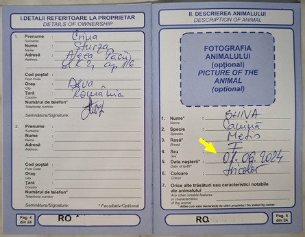 Sie wurde laut Schätzung des Rumänischen Tierarztes am 1.6.24 geboren. Die folgende Zeit war nicht schön - auf Rumänischen Straßen. Aber seit etwa einem Monat ist sie in Deutschland und seit drei Wochen bei uns. Wir hoffen sehr und geben uns Mühe, dass sie bald alles Unschöne vergessen hat.