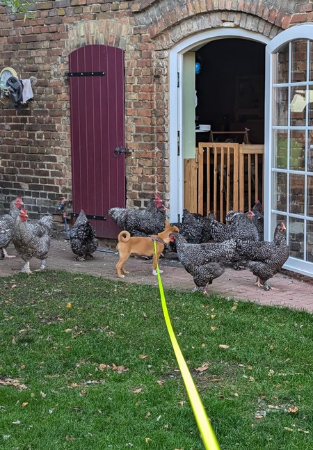 Hühner: Nach den beiden 'Abgängen' vor 10 Tagen ist die Schar sehr zur Ruhe gekommen. Wir hatten so einen ähnlichen Effekt schonmal, als wir vor längerer Zeit Emil 'entnommen' haben, der ja auch die Damen gepickt hatte. Aber diesmal ist es schon sehr beeindruckend. Ixi und Ypsi zanken sich noch untereinander und gelegentlich auch mit Lila und Greenie, aber Oskar hat die Gruppe ansonsten nun vollkommen im Griff und in Ruhe und ist mehr denn je ein wunderbarer Hahn: Voller Fürsorge für alle Familienmitglieder, also auch für die Jungen und die Jungs, passt super auf und hat sich auch bestens mit Elli arangiert. Immer wieder gibt es bezaubernde Situationen, die hoffentlich demnächst einmal hier als Bild oder Video zu sehen sein werden.