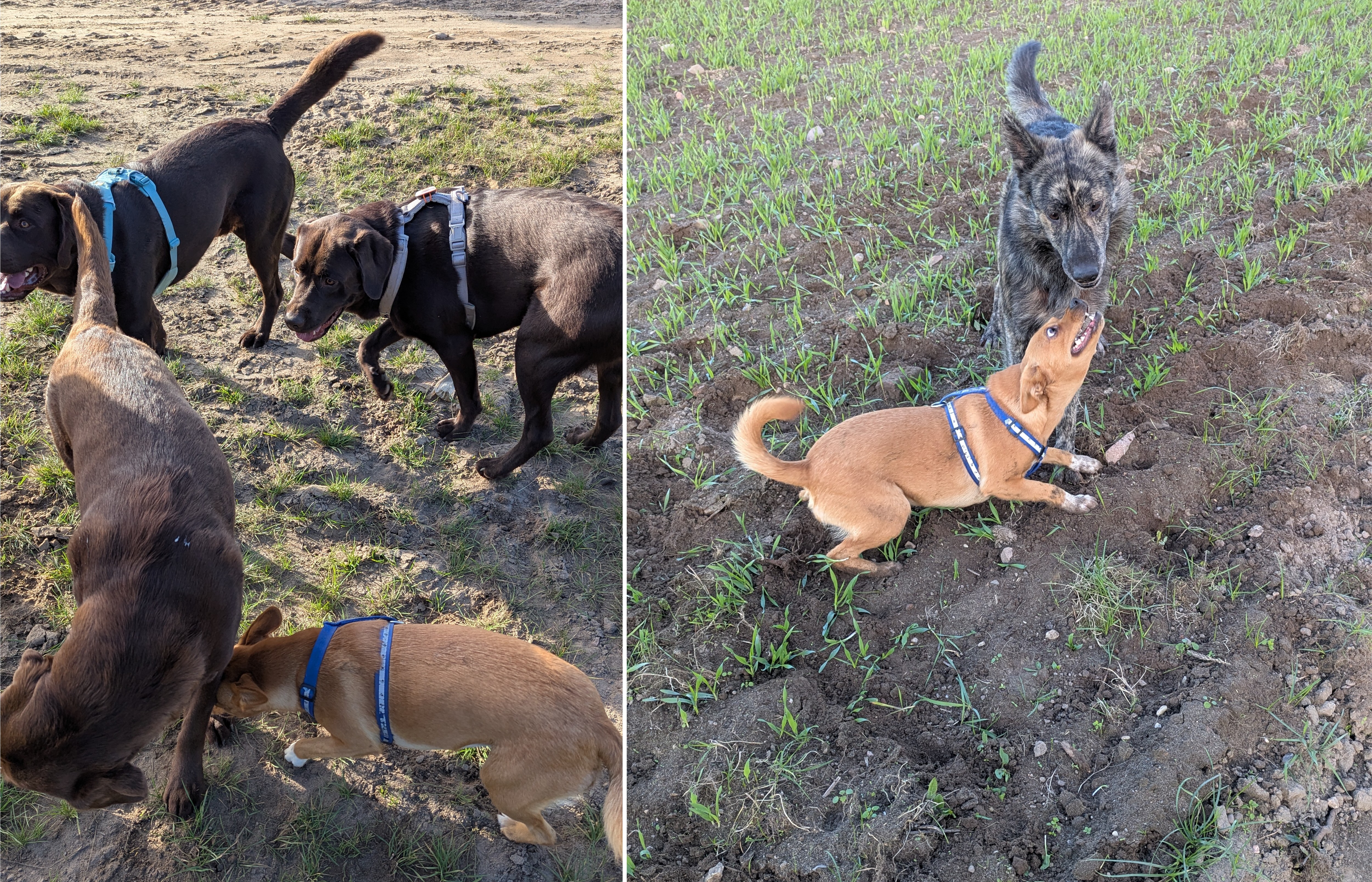 Sie sind zwar wie immer an den Zaun gestürmt, aber ganz leise, ohne einen Mucks. Und dann haben wir uns begrüßt und freudig beschnüffelt. Nach einer Weile waren wir fertig mit der Begrüßung und sind jeder unserer Wege gegangen. Alles ganz ohne Knurren oder Kläffen. So ist's schön!