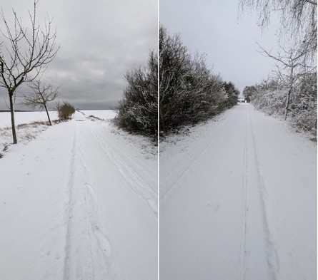 3.1.26 Soo weit gucken im Schnee: Das ist ungefär in der Mitte der Mützdorfrunde, in beide Rechnungen gesehen. Ganz schön weit, was?
